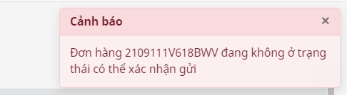 Trong quá trình quét đơn hàng, nếu đơn nào bị quét trùng 2 lần hoặc đơn đã bị hủy trên sàn, hệ thống sẽ hiện cảnh báo như ảnh dưới.
