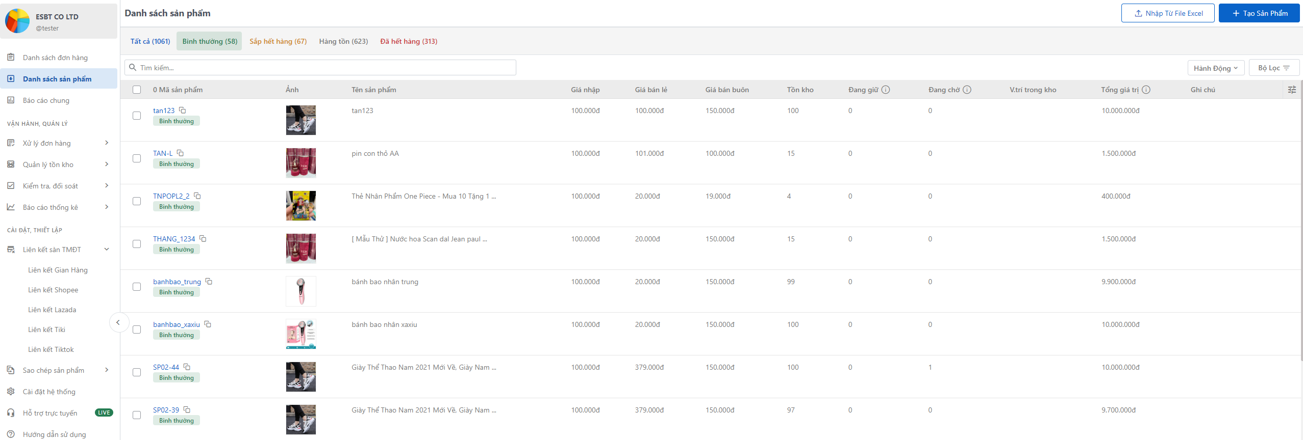 * Nếu sản phẩm có tồn kho từ 11 đến 100, trạng thái sản phẩm là **bình thường.**