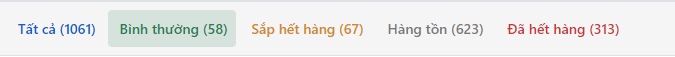 Ví dụ: Nếu bạn cài đặt cột hàng tồn kho là 100, hàng sắp hết là 10, khi đó: