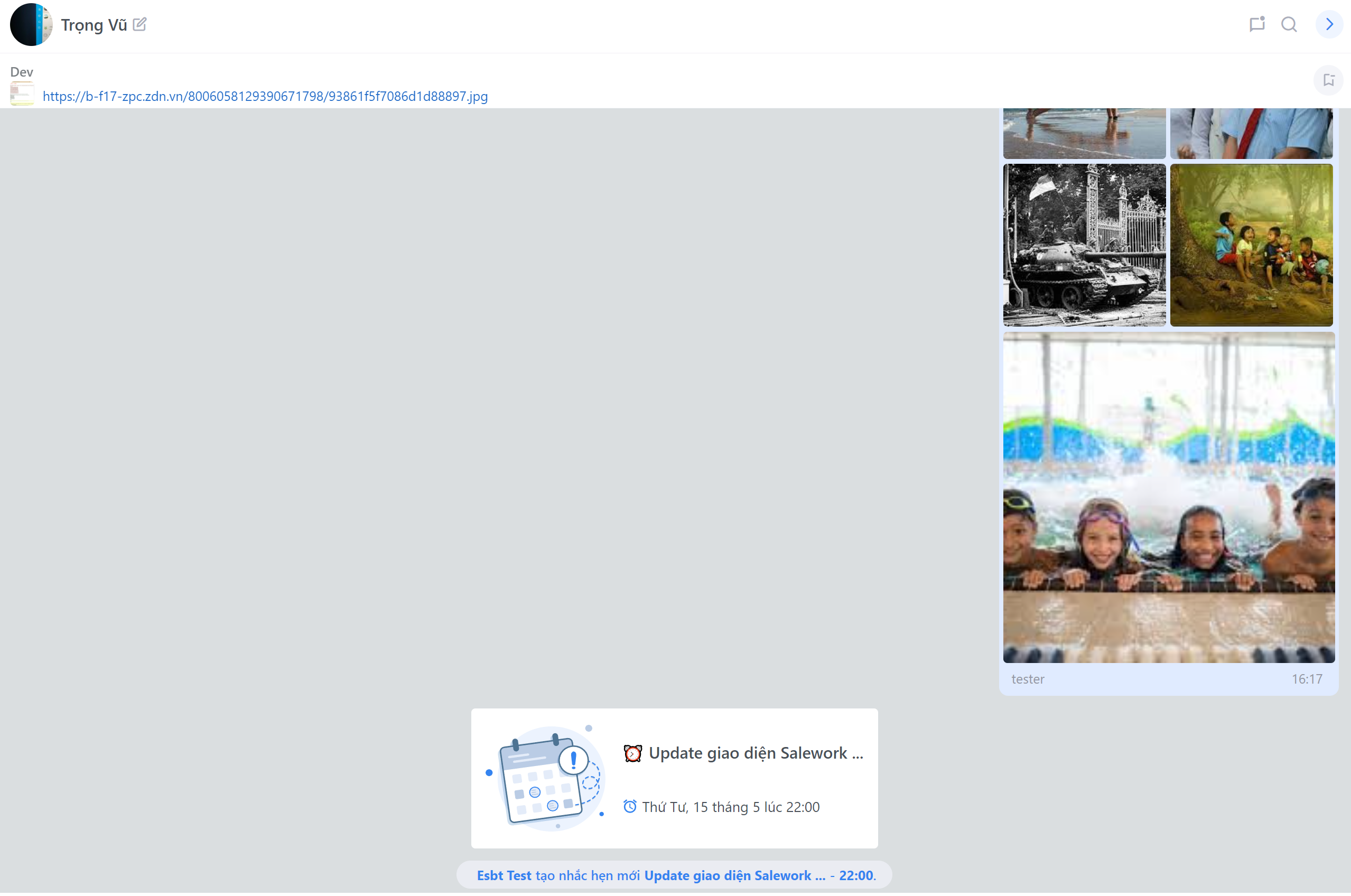 Để tạo nhắc hẹn trên Salework Zalo, tại hội thoại cần tạo nhắc hẹn bạn ấn vào icon như khoanh tròn dưới hình sau